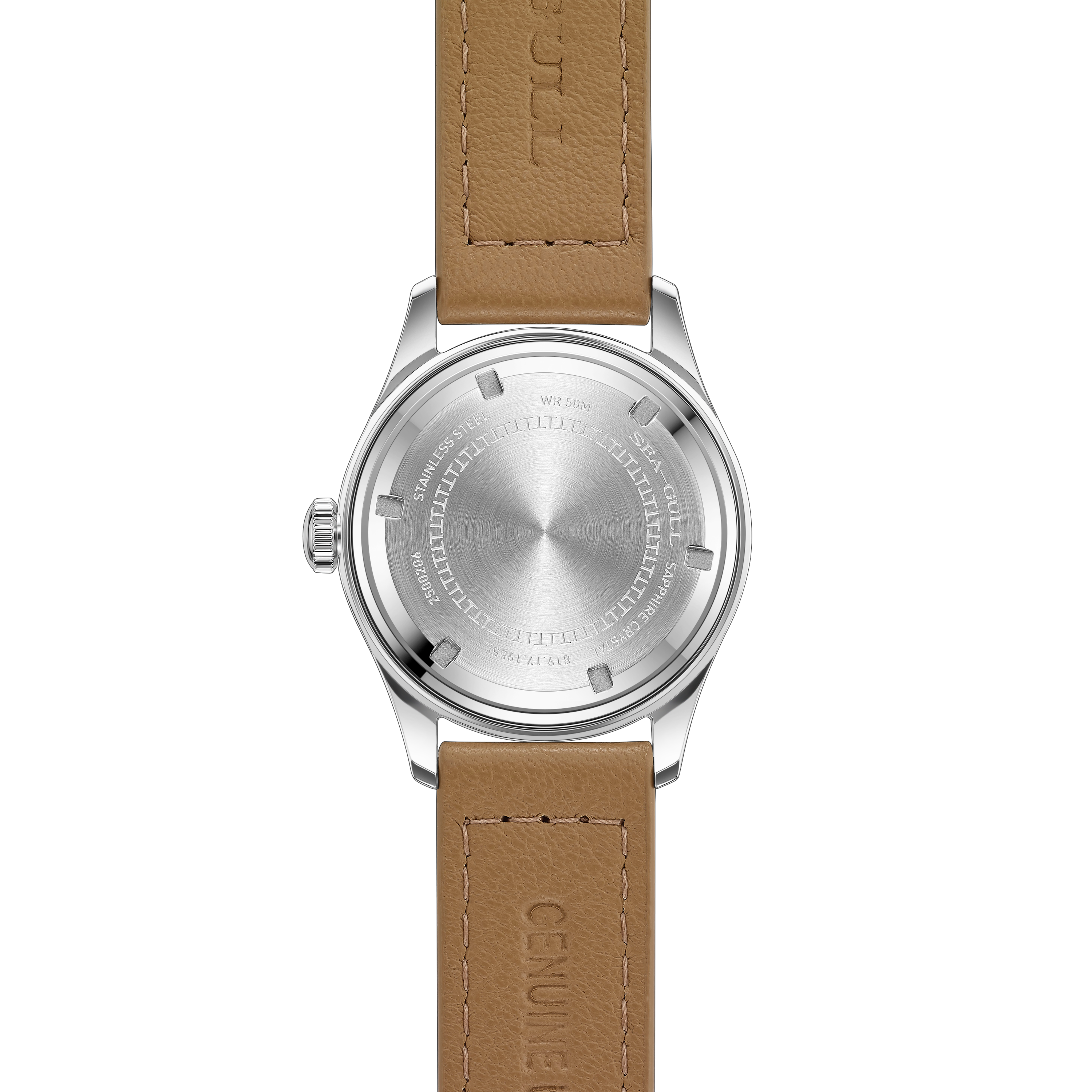 11点位和1点位分别设计1955和2025字样,标志着海鸥从0到1的历史性时刻,和中国制表70周年的探索历程。