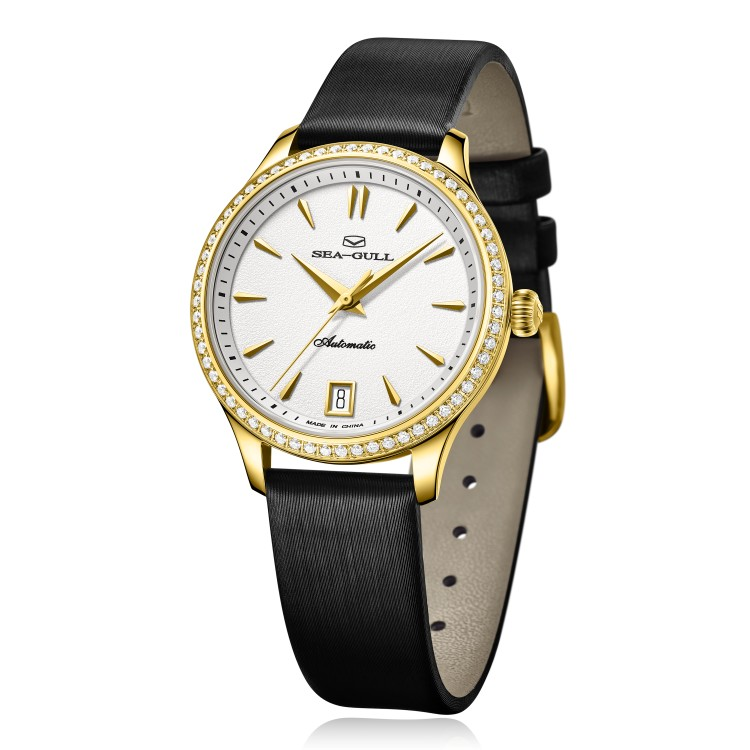 时韵系列 18K 金纤薄商务情侣腕表,18K 包金圈口,尽显沉稳大气;女款18K包金圈口搭配一圈锆石,闪耀精致光芒,宛如爱情中的彼此,相互映衬。金色太妃指针与简约立体条钉时标,优雅又时尚。6点位日历功能,记录下爱情的每一个日常。男款黑色牛皮表带质感细腻,女款绢丝包牛皮表带柔软舒适。